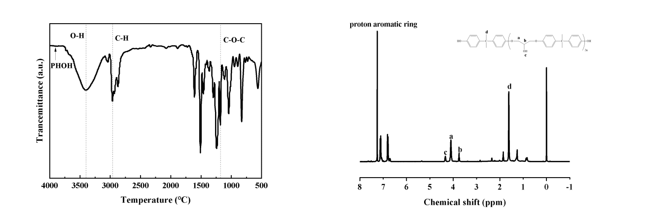 圖 3 PHOH 的 FTIR(左)和 1H NMR(右)譜圖