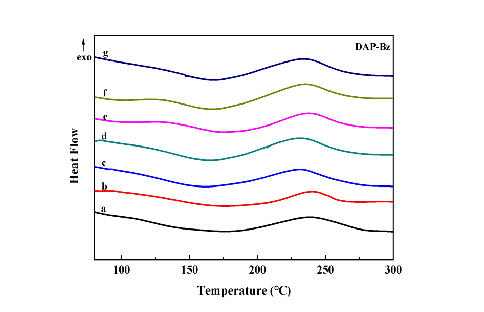 圖 5 DAP-Bz 及其復(fù)合物的 DSC 圖譜