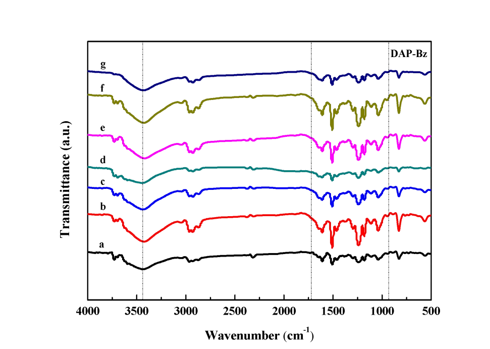 圖 6 DAP-PBz 及其復(fù)合樹脂的 FTIR 譜圖